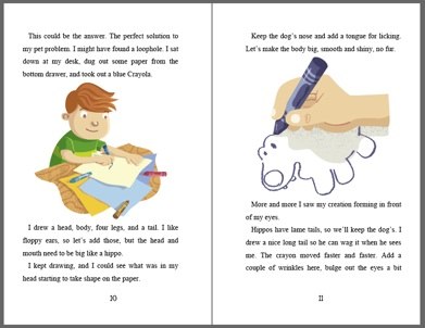 For me, the actual writing process doesn’t take very long. Coming up with the storyline is the most time consuming. How does the book start? What happens along the way? How is it going to end? Those are all things I’ve been thinking about since Dogopotamus was published. Once I had the general idea of how the book was going to be structured, actually sitting down and writing becomes the fun part.